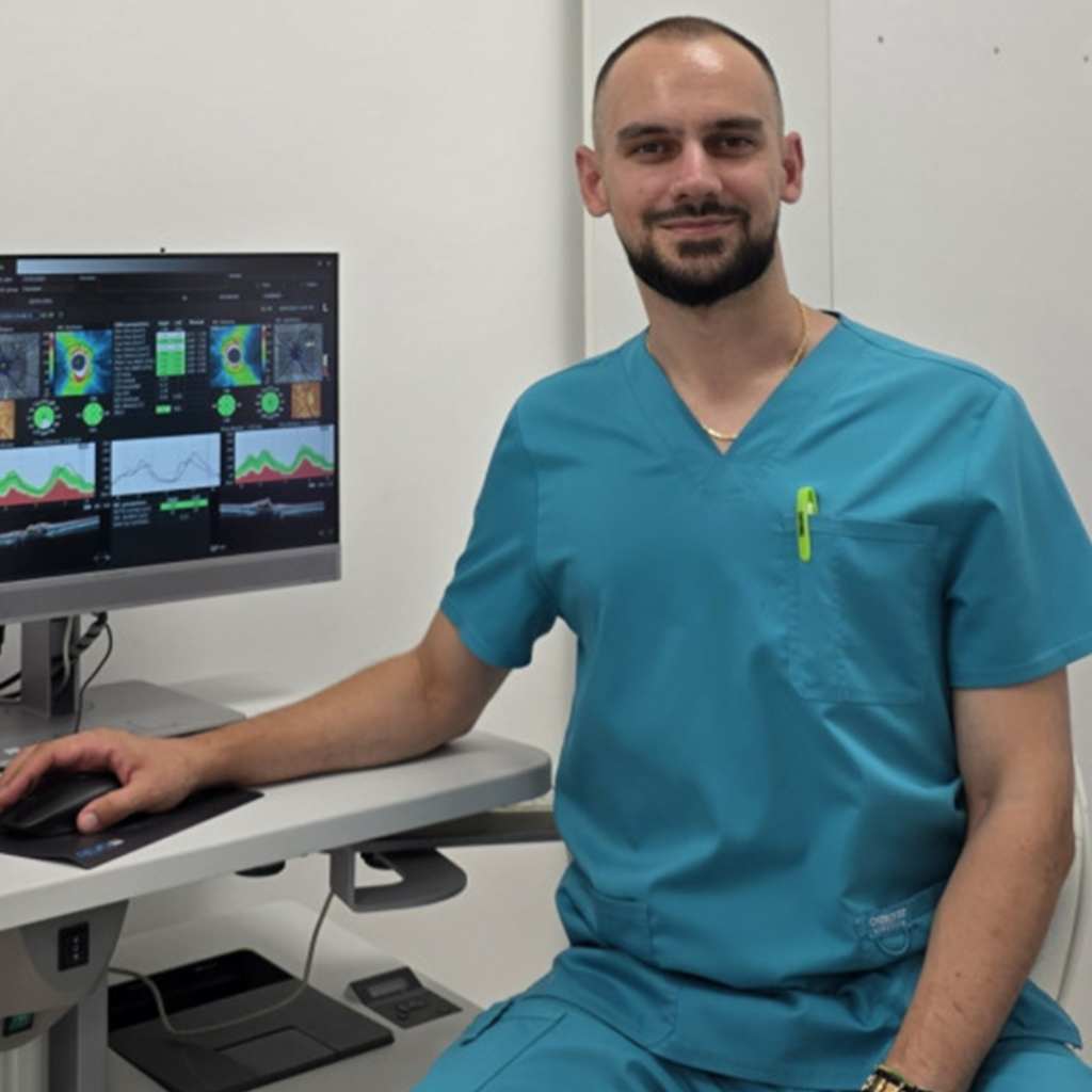 Магистър по Оптометрия с над 5-годишен стаж като Оптометрист. Занимава се в сферата на очната оптика повече от 10 години. Преминал е обучителни курсове на водещи производители като Alcon, CooperVision, Seiko, както и курсове на платформата Orbis. Редовно посещава български и международни конференции и семинари. Има опит и като Преподавател в СУ „Св. Климент Охридски“ на студенти по Оптометрия. Член на Български съюз на оптометристите.